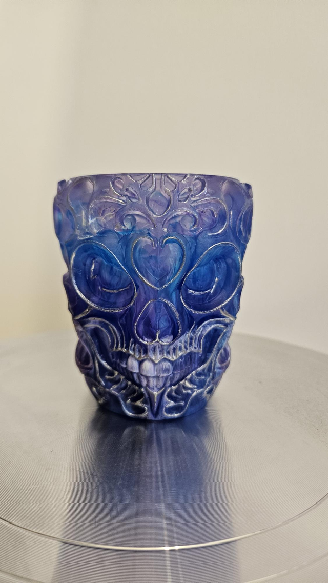 Add a bold touch to your space with this striking handmade resin skull holder, finished in swirling shades of blue and purple with delicate metallic detailing. This piece is entirely unique 🖤