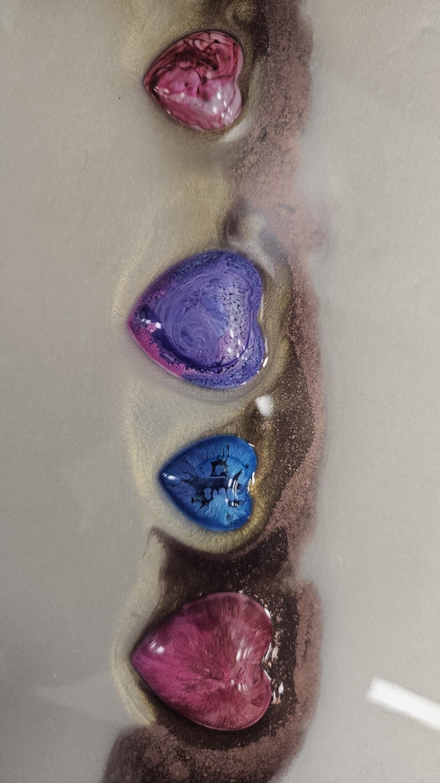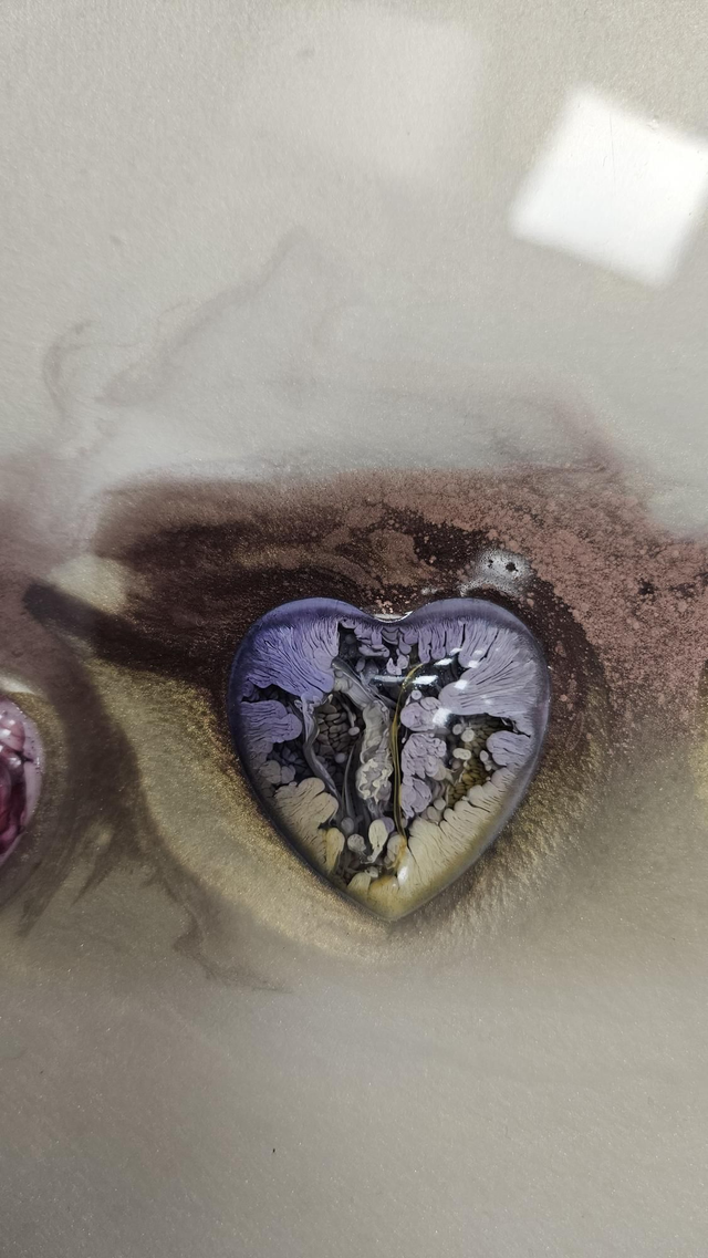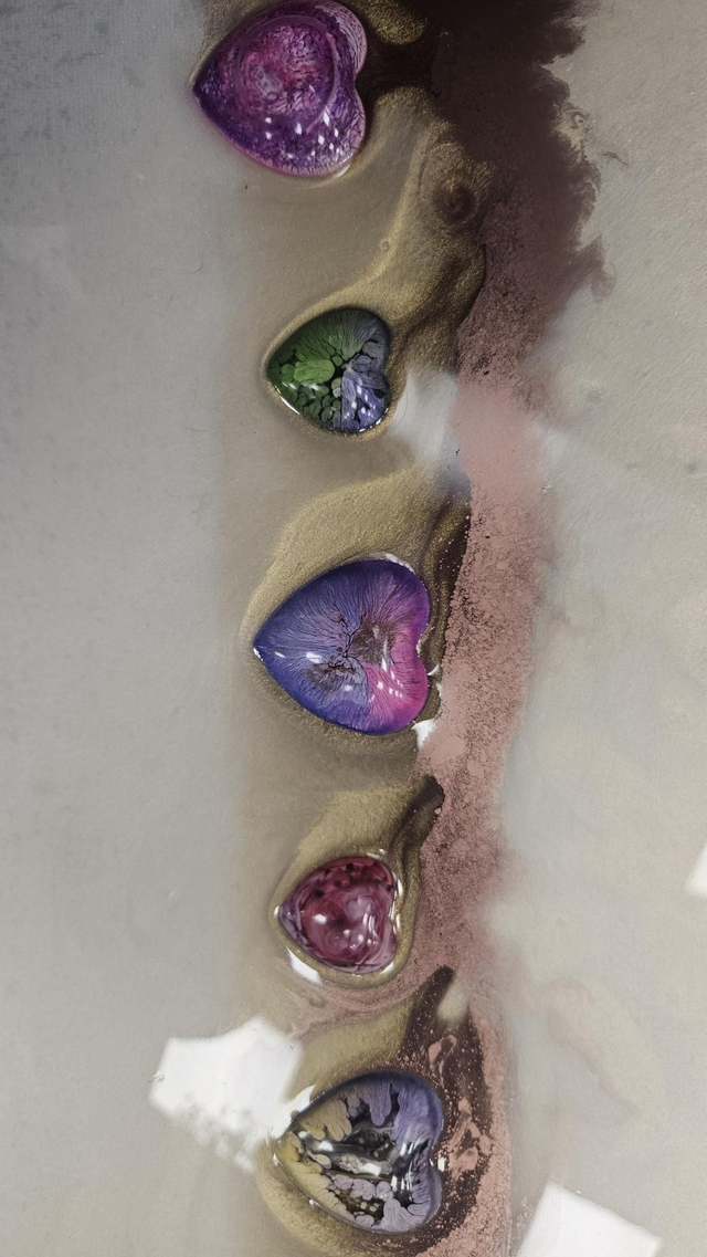 Every heart is hand-poured, making each piece truly one of a kind. Subtle textures and shimmering tones catch the light from different angles, creating depth and movement while keeping an elegant, calming feel.
